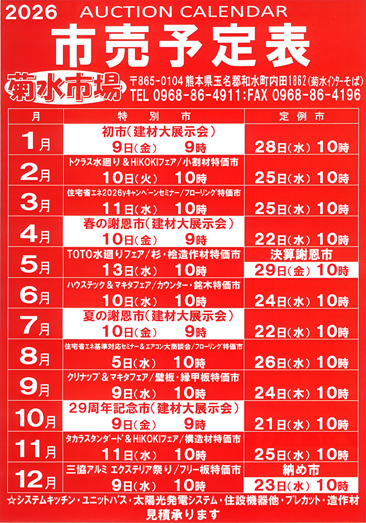 月2回のペースで市を行っております。建設会社・工務店様等に木材を販売しております。